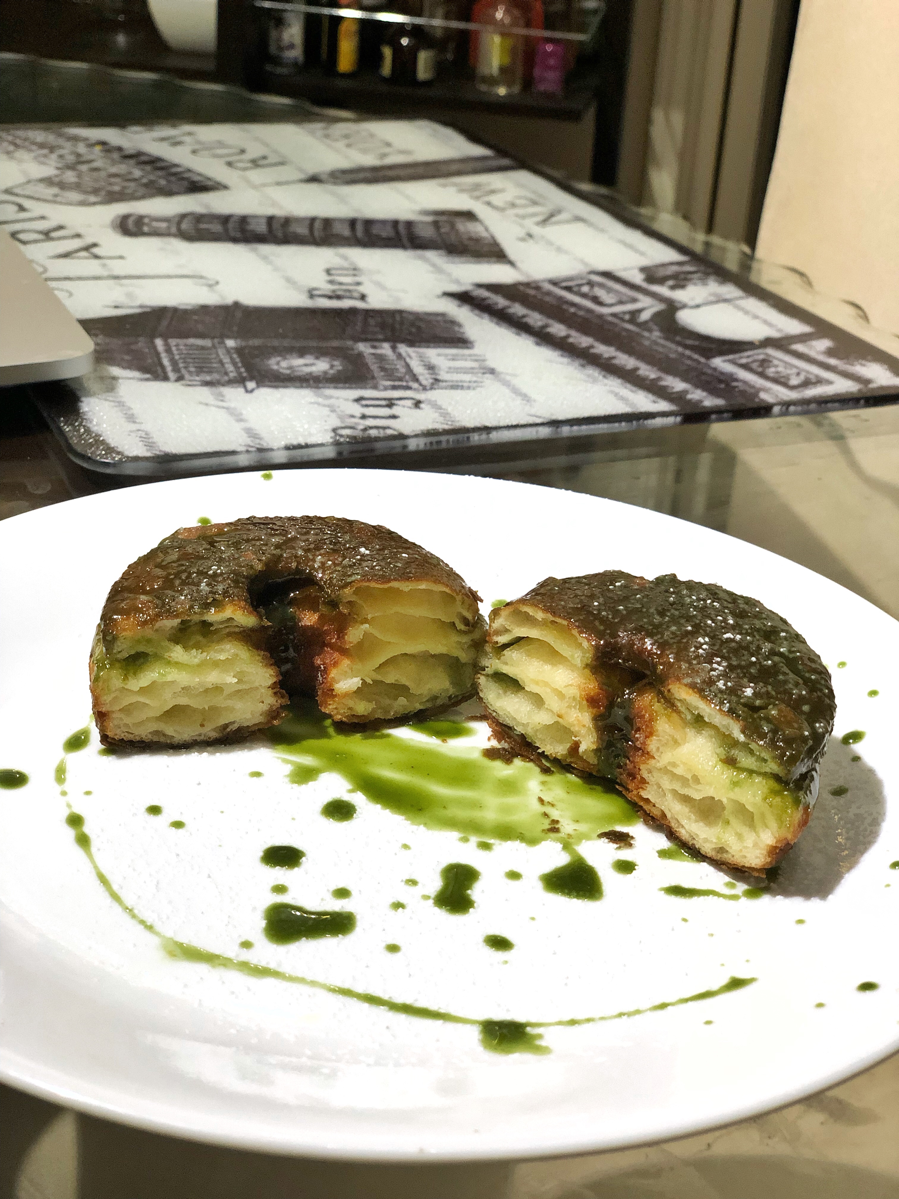 Dessert Matcha Glazed Cronut Posted by Elaine Lee on 2019-09-032019-09-07 Matcha glazed cronut. So fluffy, buttery and delicious. An adaption from Dominique Ansel’s croissant recipe which I deep fried. Dozens of light flaky layers My wife decorated the first cronut. How did she do? Freshly deep fried cronut Share this: Click to share on X (Opens in new window) X Click to share on Facebook (Opens in new window) Facebook Like Loading...