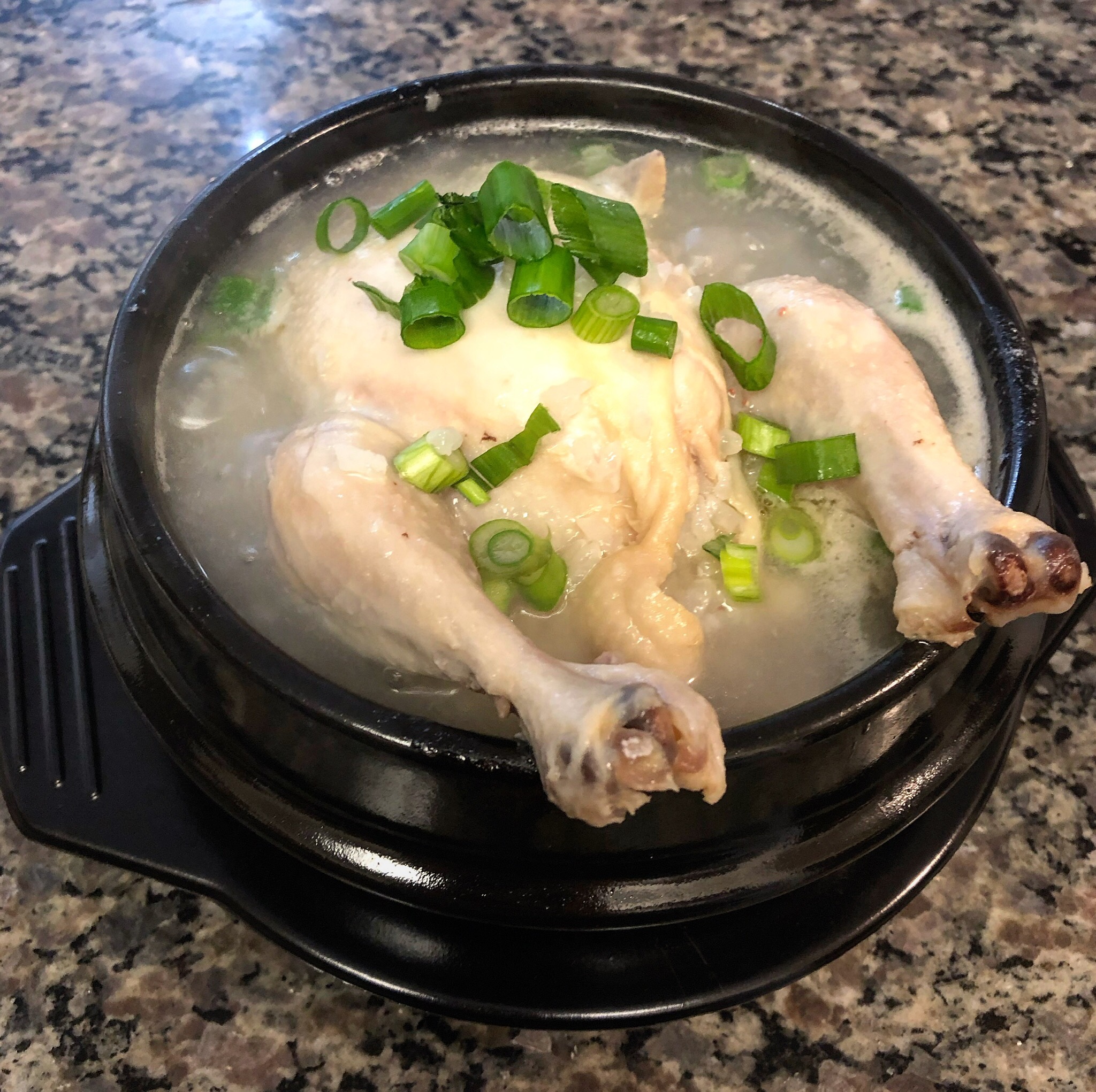 Samgyetang (Ginseng Chicken Soup in Korea) is a traditional soup for body health. It consists primarily of a whole young chicken stuffed with garlic, sticky rice, jujube and ginseng. It’s also what my wife requests to eat at least once or twice a month saying it’s her most favourite comfort food.