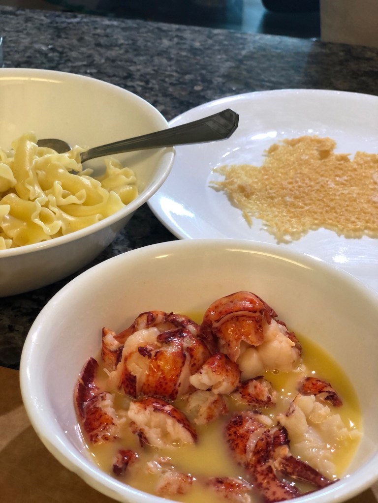 An elevated version of a childhood favourite. Take one perfectly butter poached lobster tail, add one creamy white sauce made with lobster stock, cream and marscapone cheese topped with a parmesean Tuille made in the pan.