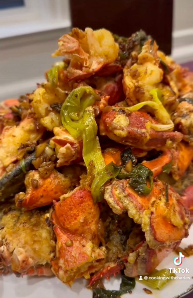 Heat up a pan and add a bit of the oil you used to fry the lobster with. Then add some sauce and toss the lobster into the sauce. I like using a wok and like saucing it in batches. Stack the sauced pieces on a large tray and stack it high for the lobster mountain effect and serve!